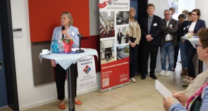 „Fehlende Barrierefreiheit betrifft viele Menschen – vor allem Menschen mit Behinderungen, ältere und pflegebedürftige Menschen“, erklärt Annika Nietzio, die Leiterin des Kompetenzzentrums. „Mit der neuen Ausstellung zeigen wir flexible und praktikable Lösungen, mit denen Barrieren in verschiedenen Lebensbereichen abgebaut werden können. Es ist eine lebendige Ausstellung zum Anfassen und Ausprobieren“, würdigte bei der Ausstellungseröffnung am 24.04.2026 auch Barbara Molitor vom Ministerium für Arbeit, Gesundheit und Soziales des Landes Nordrhein-Westfalen. „Barrierefrei Arbeiten, der neue Schwerpunkt der Ausstellung, ist ein Meilenstein für die Agentur Barrierefrei NRW. Respekt, was hier entwickelt wurde.“