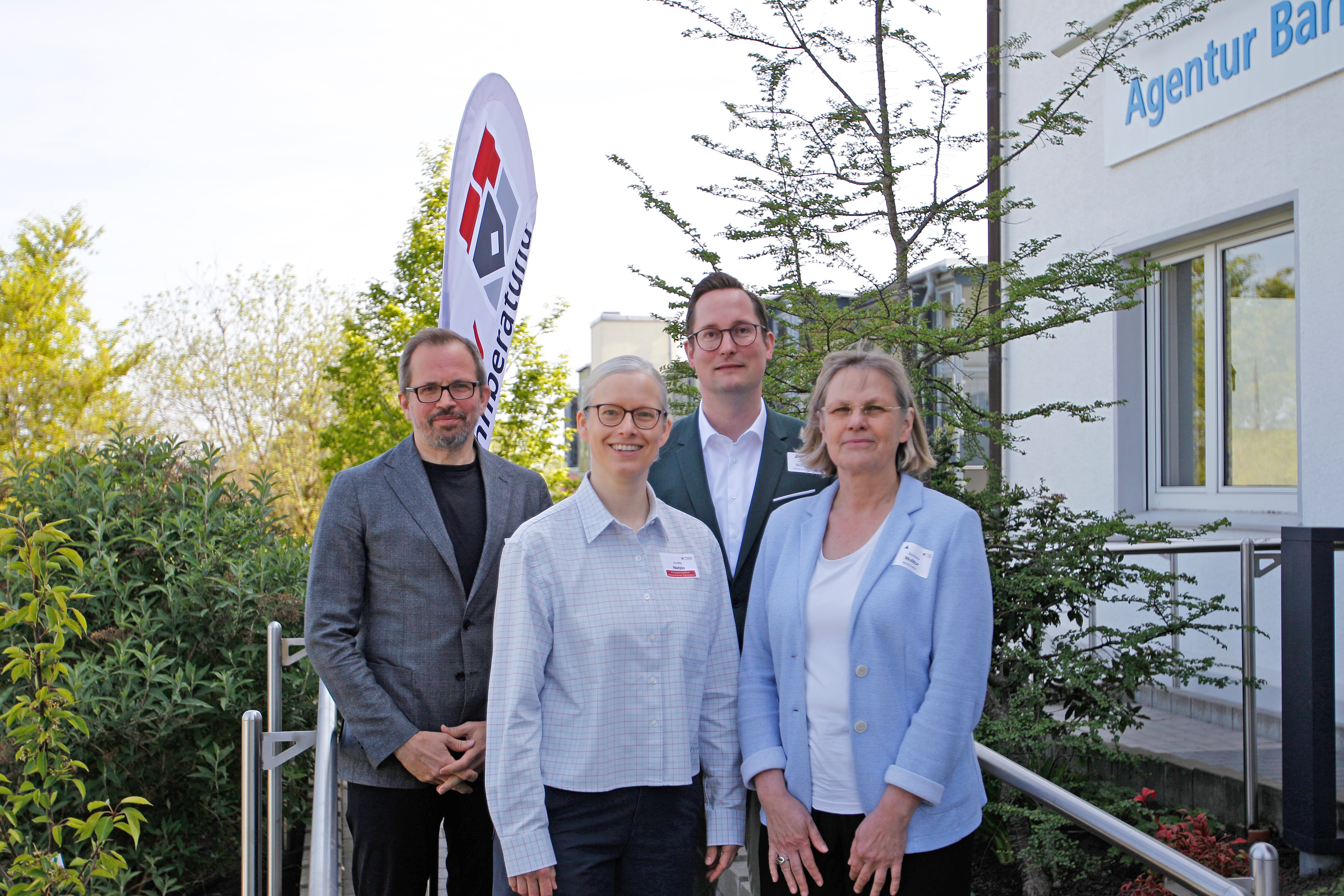 v.li. Markus Bachmann (Vorstand ESV), Annika Nietzio (Leiterin KBV), Landrat Jan-Christoph Schaberick und Barbara Molitor vom Ministerium für Arbeit, Gesundheit und Soziales des Landes Nordrhein-Westfalen -